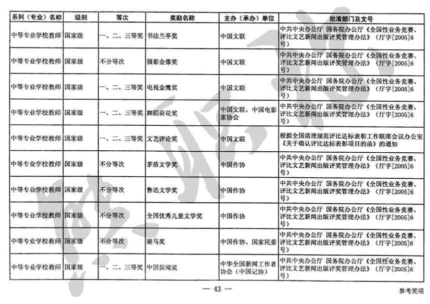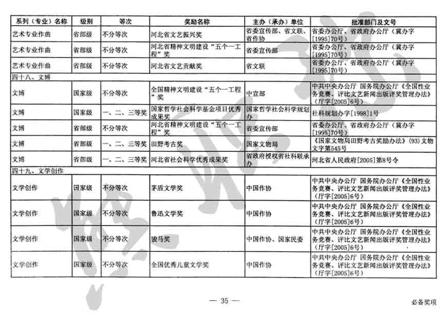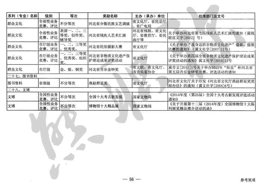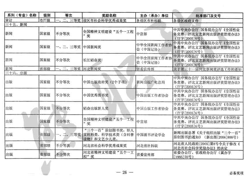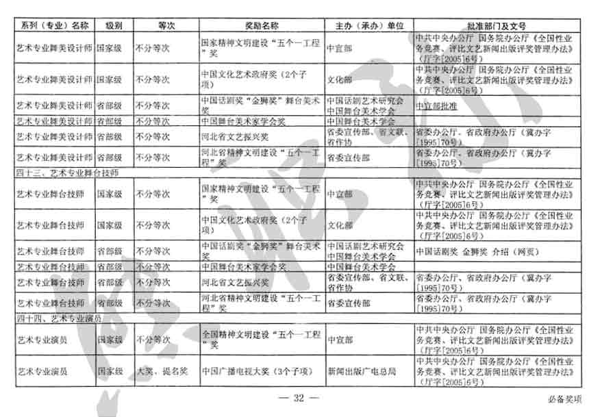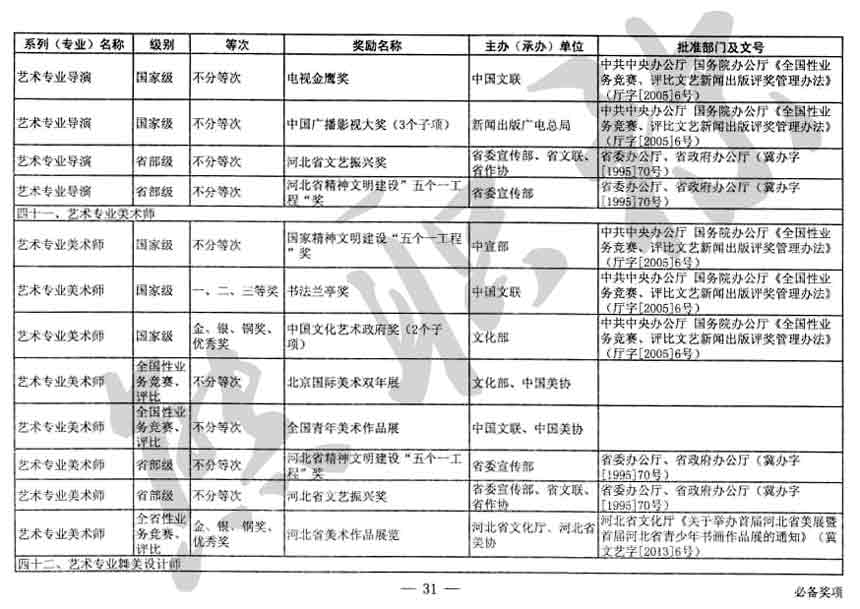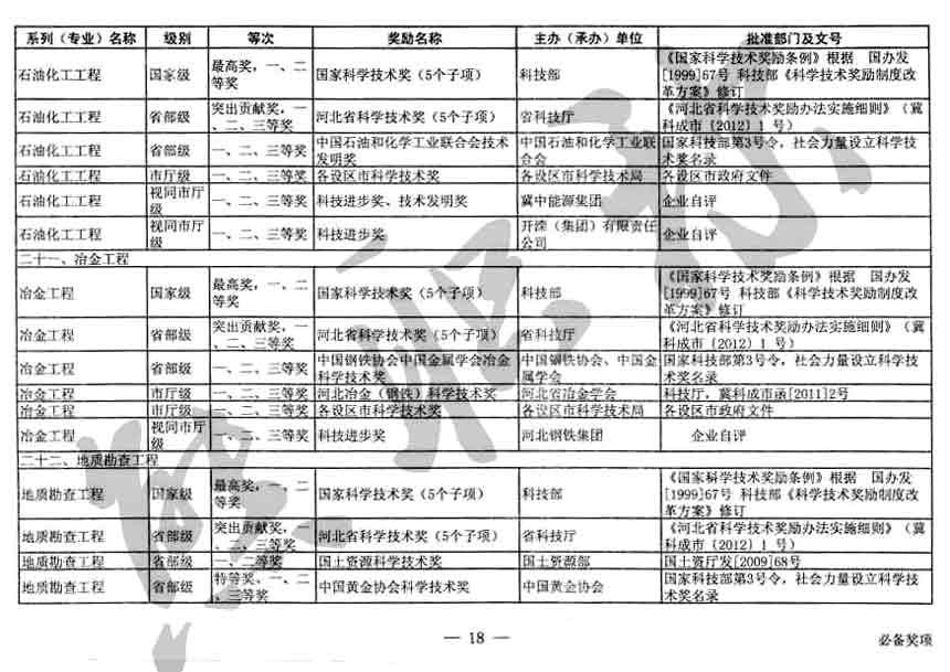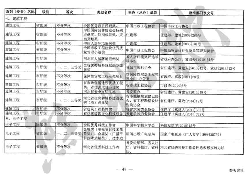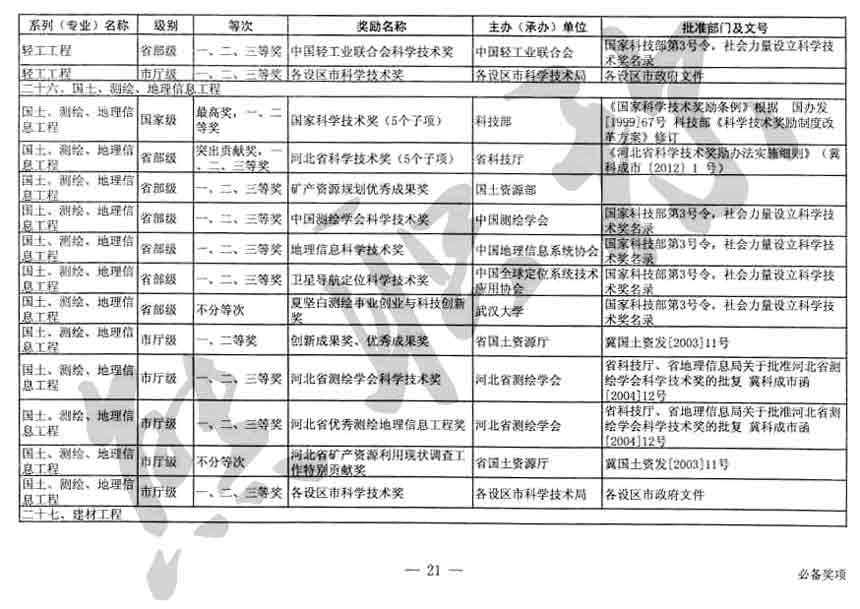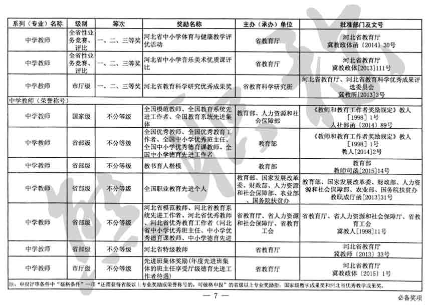 職稱評審業(yè)績成果中包含職稱評審獎項,那么究竟什么是職稱評審獎項,具體各個專業(yè)的河北職稱評審獎項劃分是怎么來的,熊老師今天就把咱們河北省公布過的職稱評審獎勵給您發(fā)一下,人才辦理職稱的時候可以有一個參考,建議收藏,這是一整份, ………