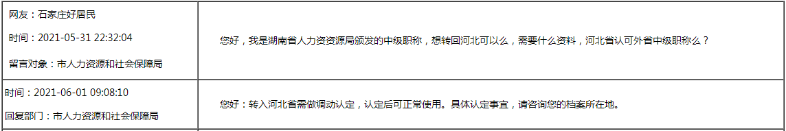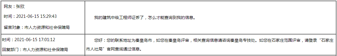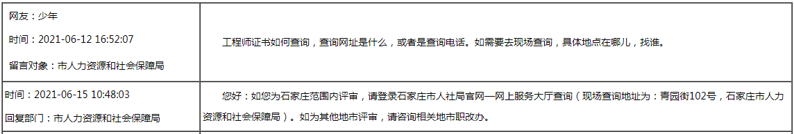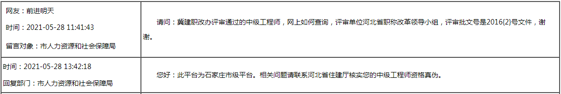 石家莊人民政府回復(fù)您:直接評中級職稱問題!工程師職稱查詢問題!職稱證書換證問題!工程師職稱評審公示問題! ………
