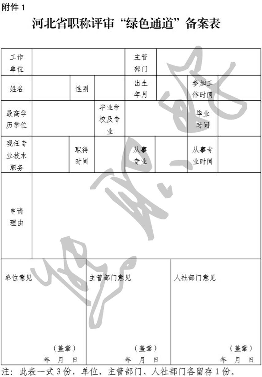 2.長期堅守生產(chǎn)一線且在工程技術(shù)崗位從事技術(shù)技能工作獲得省技術(shù)能手稱號的高技能人才、世界技能大賽銀牌、銅牌和優(yōu)勝獎選手,可直接申報評審工程師職稱。"綠色通道"申請由用人單位提出,并填寫《河北省職稱評審"綠色通道"備案表》(附件1),經(jīng)主管部門同意后,按照管理權(quán)限備案,其中高級職稱數(shù)報省人力資源社會保障廳備案。